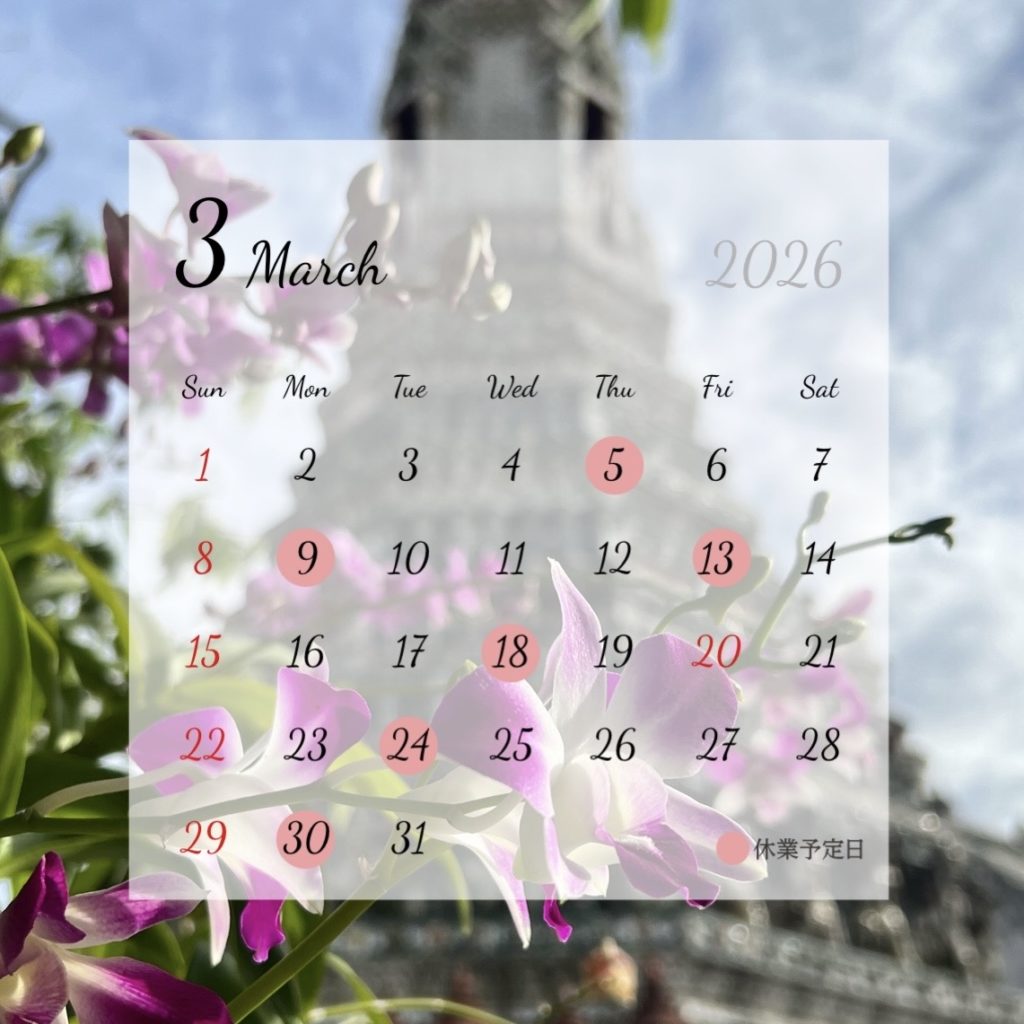 3月の休業予定日です。どうぞよろしくお願いします。
